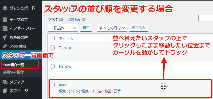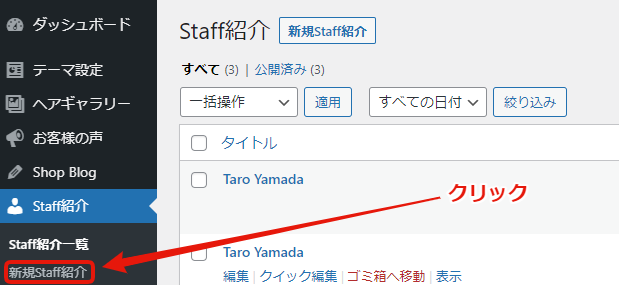 Staff紹介から、新規Staff紹介をクリック