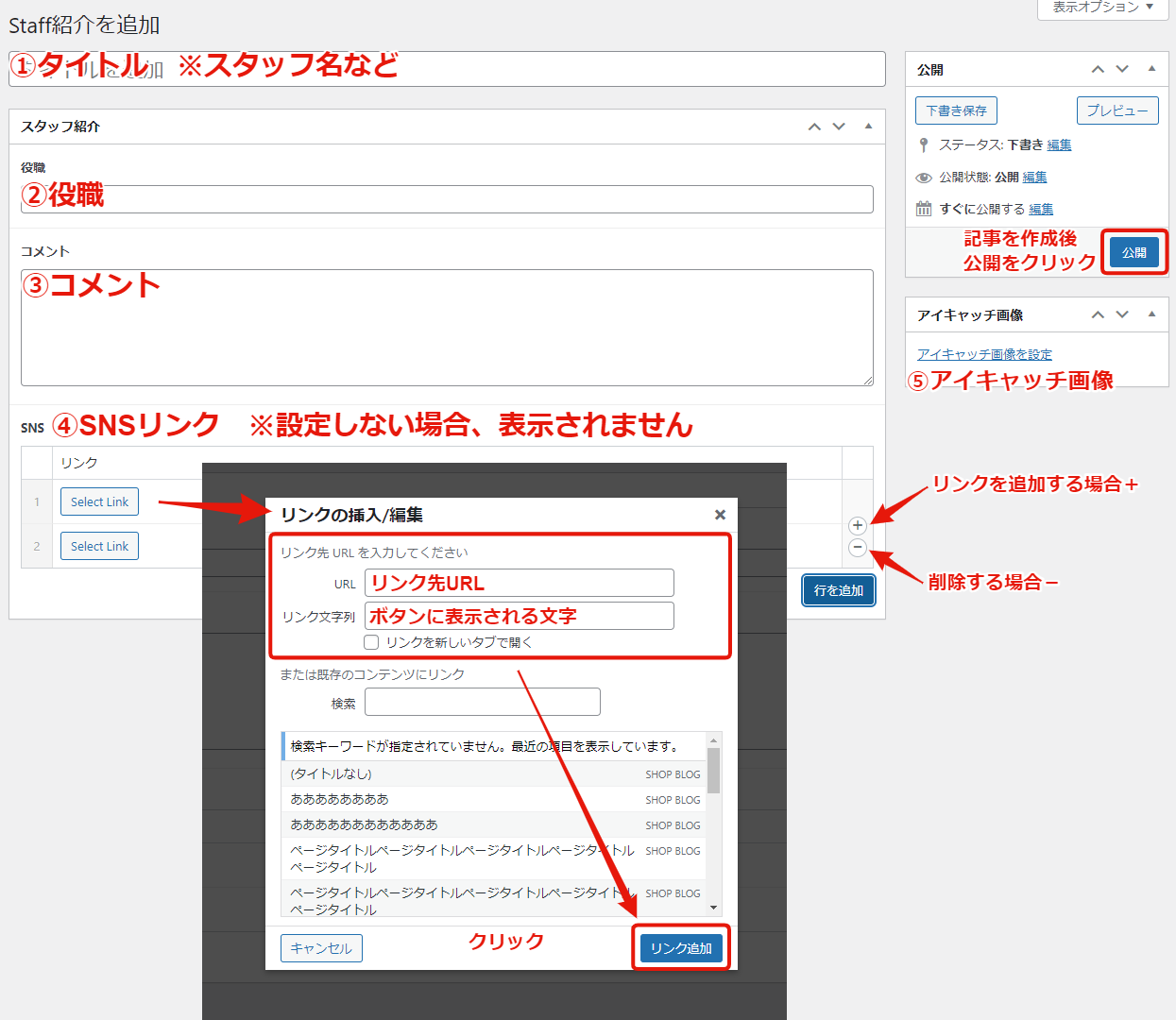 ⑤アイキャッチ画像・・・スタッフ写真など